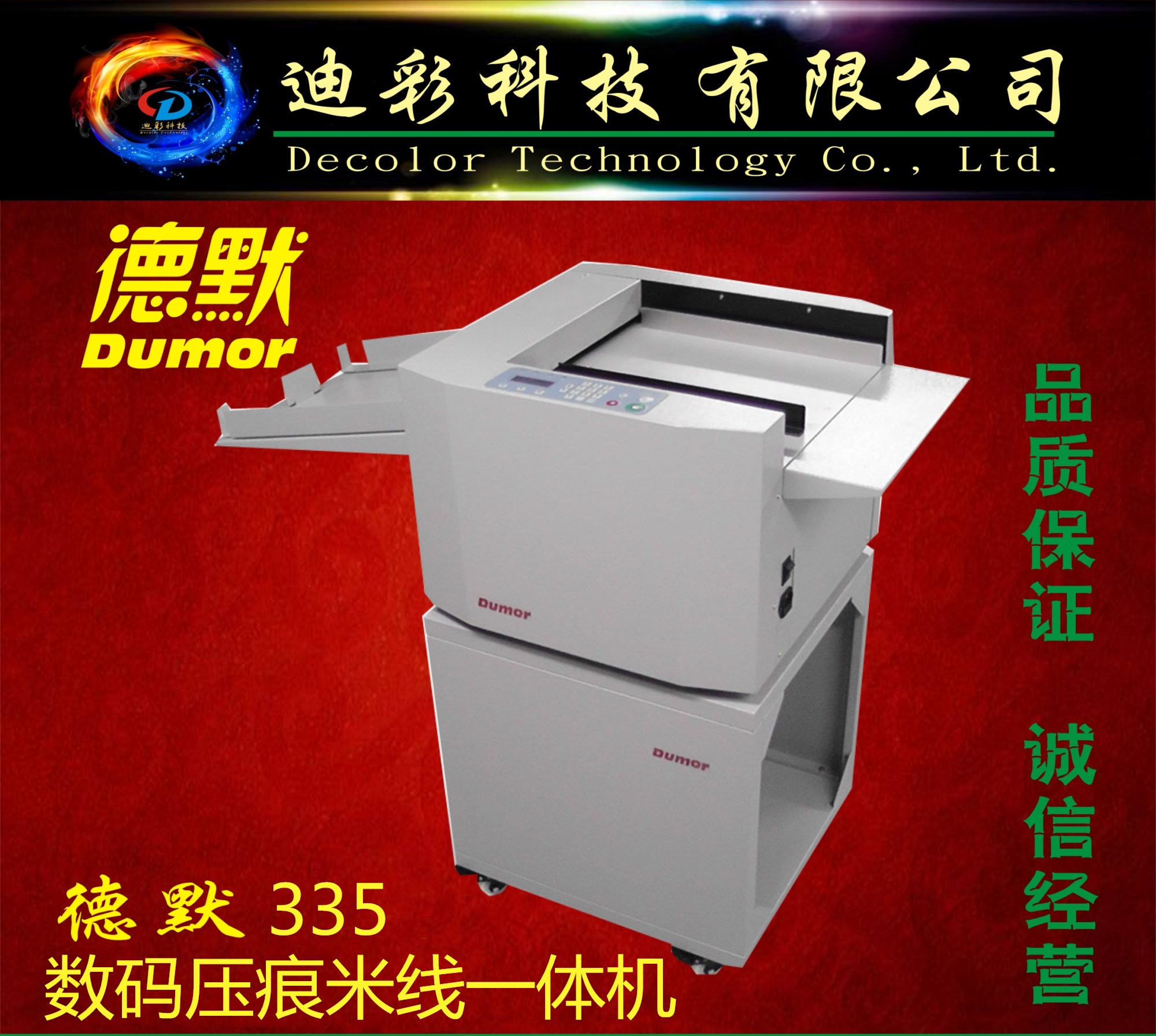 廣西迪彩科技有限公司是一家專(zhuān)業(yè)從事印后裝訂設(shè)備和耗材銷(xiāo)售與服務(wù)的企業(yè)。公司經(jīng)營(yíng)產(chǎn)品涵蓋了從膠裝、切紙到裝訂成冊(cè)等多種印后裝訂設(shè)備及耗材,經(jīng)營(yíng)的品牌有:前鋒、宏基、明月、惠普樂(lè)、德默、佳能、道頓、迪霸、光明、森威、新彩、經(jīng)典、科創(chuàng)、湘圖、迪仕冠、海軍上將、理鋒、艾美多、好利用等。公司致力于為客戶(hù)提供多方位的裝訂解決方案與售后服務(wù)。 公司主營(yíng)產(chǎn)品有:膠裝機(jī)、切紙機(jī)、覆膜機(jī)、數(shù)碼壓痕機(jī)、數(shù)碼壓痕折頁(yè)機(jī),數(shù)碼壓痕裁切機(jī),疊圖機(jī)、繪圖儀、工程機(jī)、異形切割機(jī)、騎馬釘、冷裱機(jī),訂折機(jī)、燙金機(jī)、圓角機(jī)、淋膜機(jī)、塑...